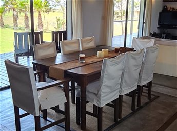•Living con estufa a leña y comedor para 8 personas