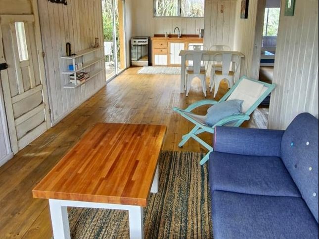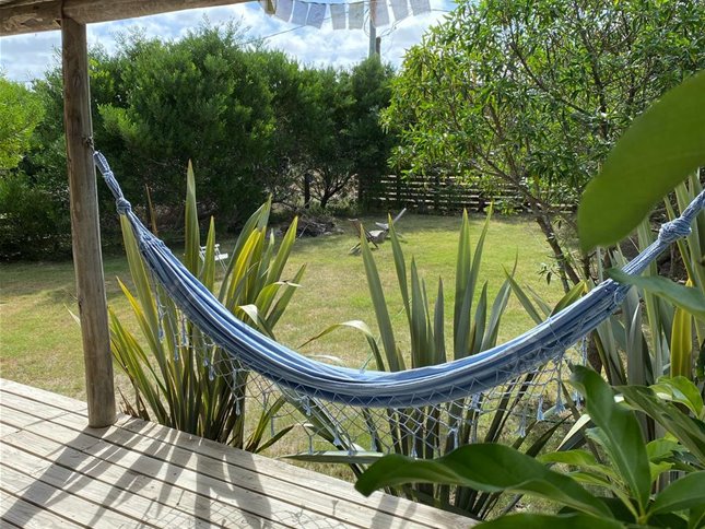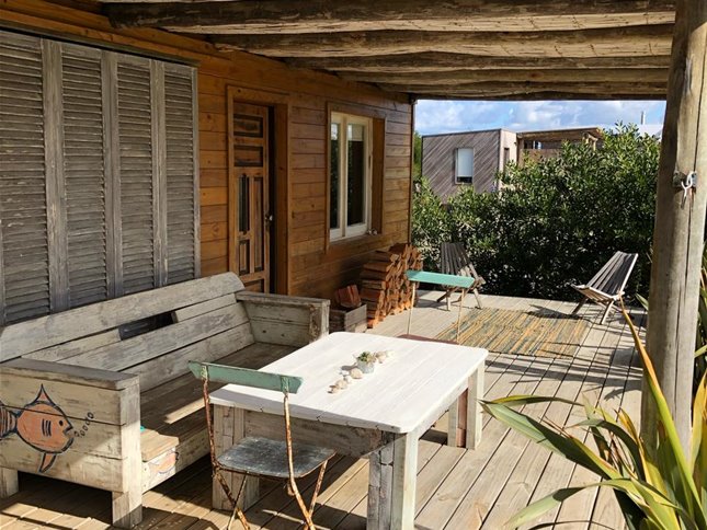 Acogedora casita de madera con mucho encanto, ubicada en una calle tranquila, a pocos minutos caminando de la playa.