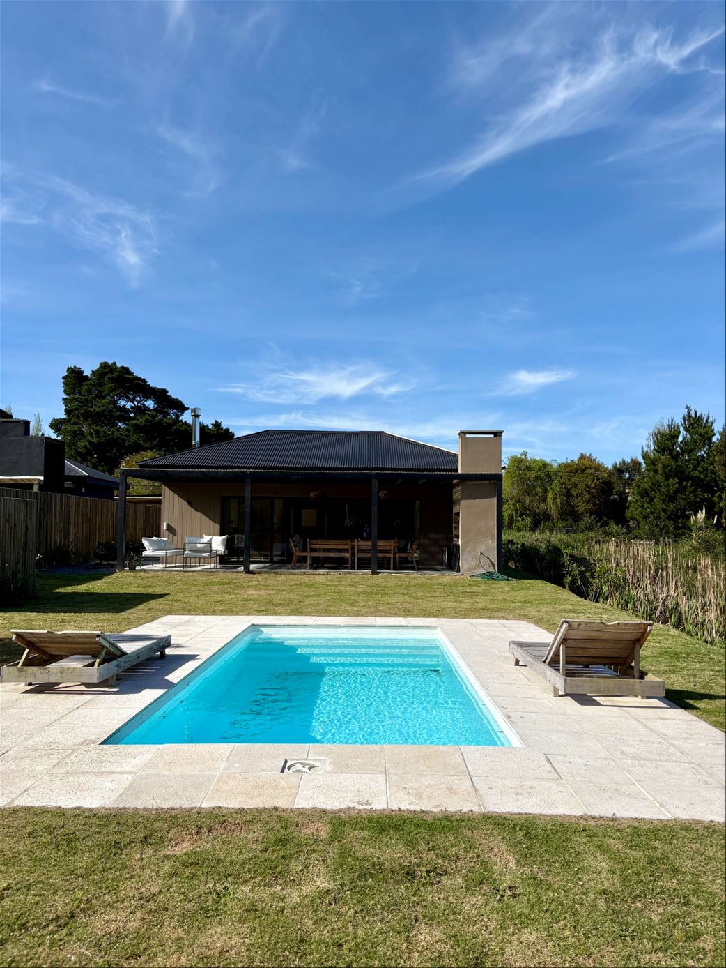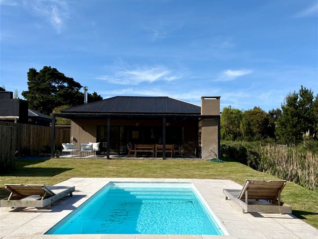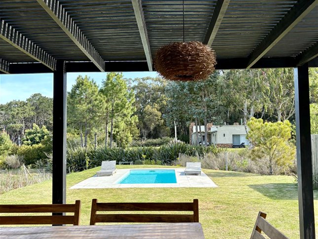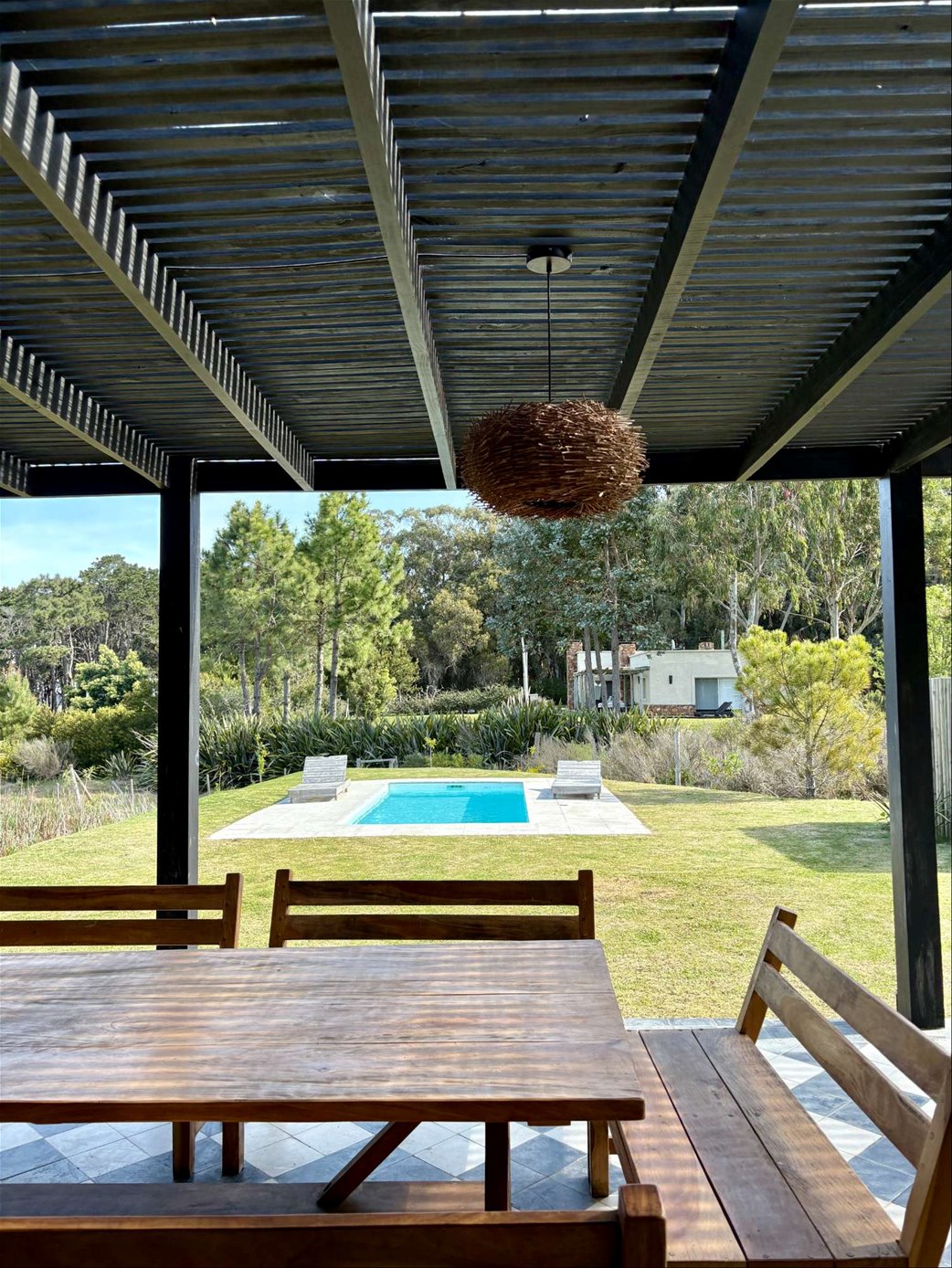 Se destaca su piscina climatizada con bomba de calor, que permite su uso durante todo el año, y un parrillero con capacidad para 12–15 personas, ideal para reuniones y asados.
