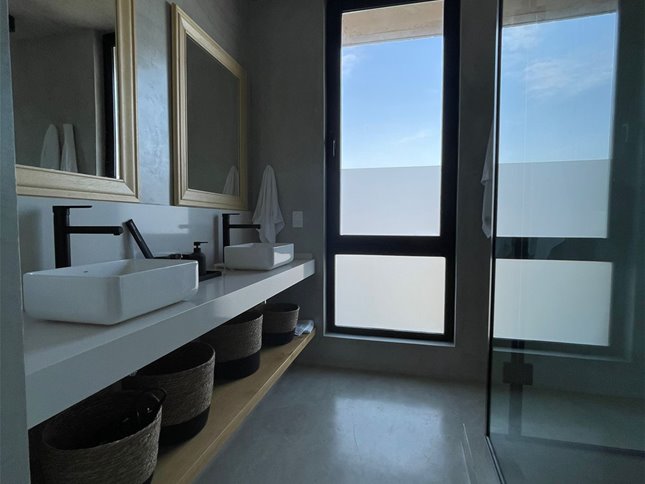 La cocina cuenta con mesadas de Dekton, mientras que los baños están terminados en Silestone, garantizando durabilidad y diseño de primer nivel.