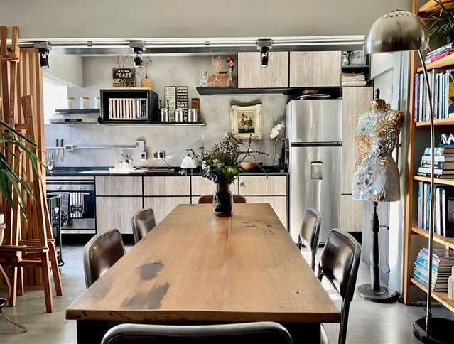 Con un total de 98 mts, renovado para darle un estilo ecléctico, la planta cuenta con Living comedor grande y cocina integrada a través de una barra.
