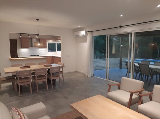 El living cuenta con espacio para empotrar estufa a leña de alto rendimiento calefaccionando los dormitorios por ductos en cielo raso, lo que hace a la casa vivible todo el año.