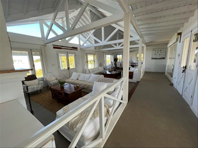 La casa consta de living comedor, con living doble, comedor para 12 personas, con amplia chimenea y salida a galería techada sobre playa.