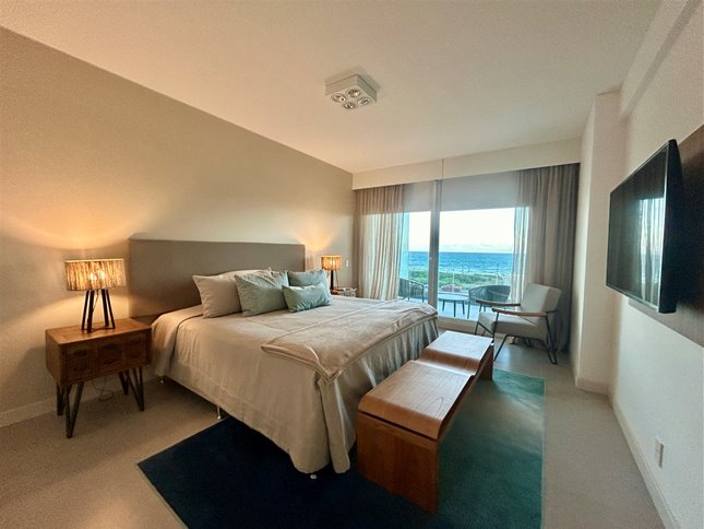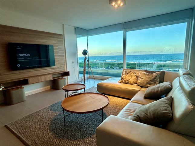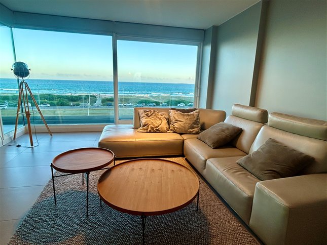 Amplio Living Comedor con salida al balcón, vista franca al mar, gran cocina equipada con terraza.