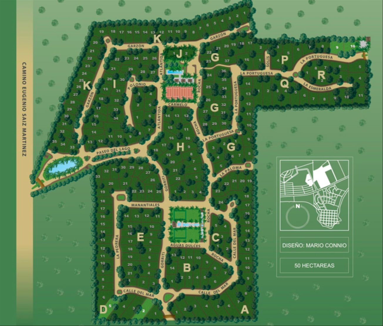 Pensado y diseñado por Mario Connio, arquitecto radicado en Europa que ha desarrollado una exitosa carrera. Además del diseño del plan general, las calles, la infraestructura y el mobiliario, Mario se ha sumergido en pensar los detalles de la vida cotidiana para que sea realmente un lugar mágico y distinto.