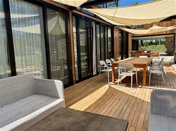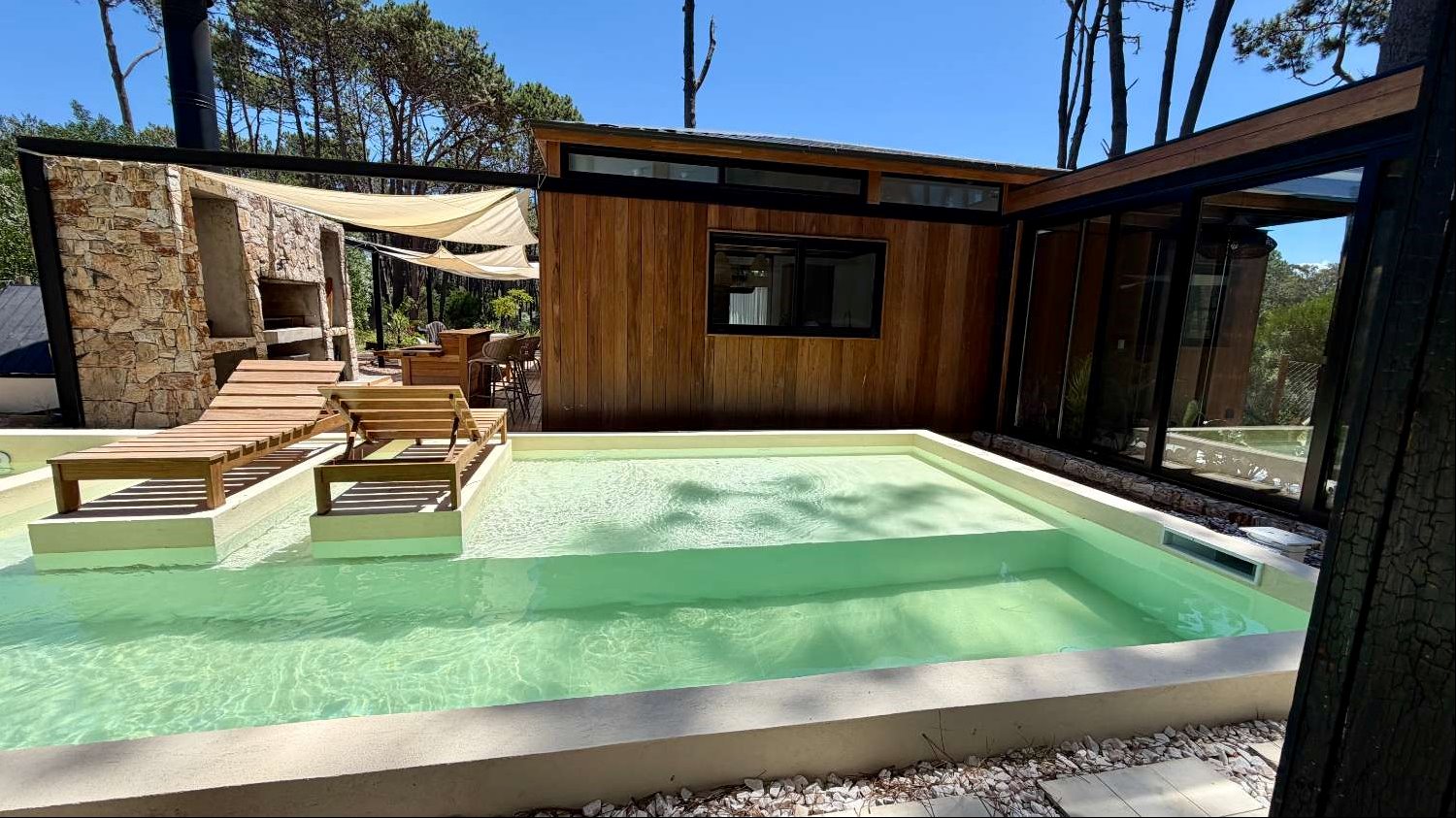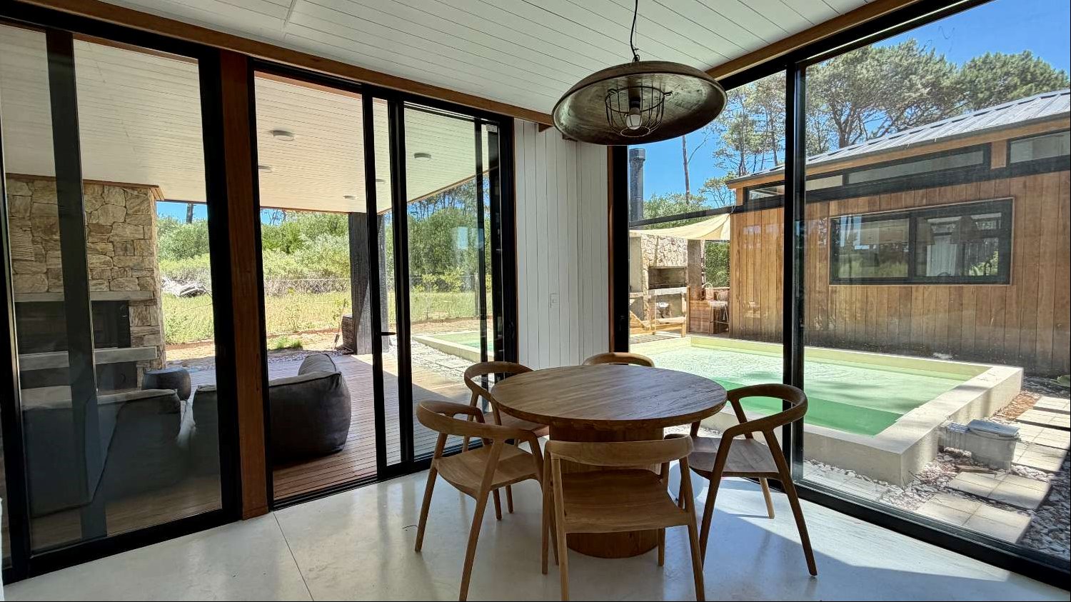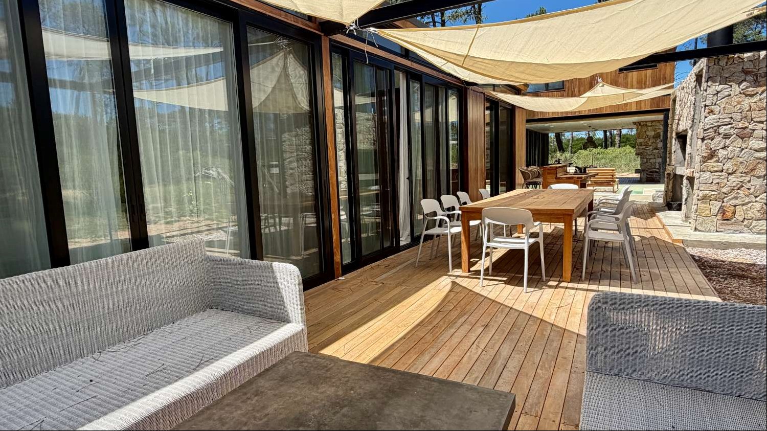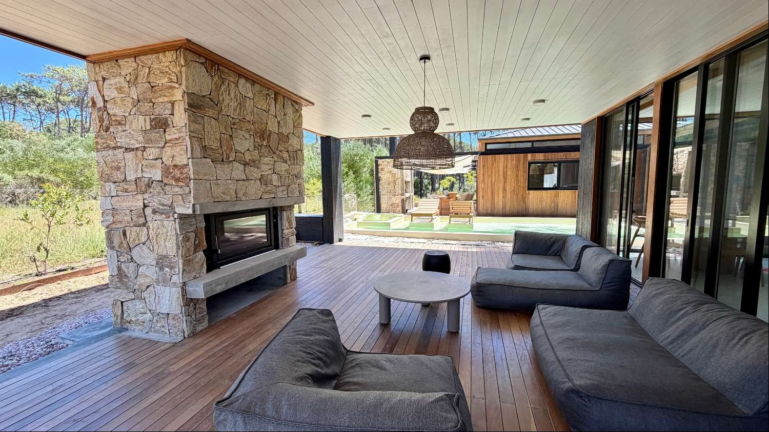 Un gran comedor y living exterior, parrilla con barra, piscina, y a parte otro estar exterior con estufa de alto rendimiento, ideal para disfrutar en cualquier estación.