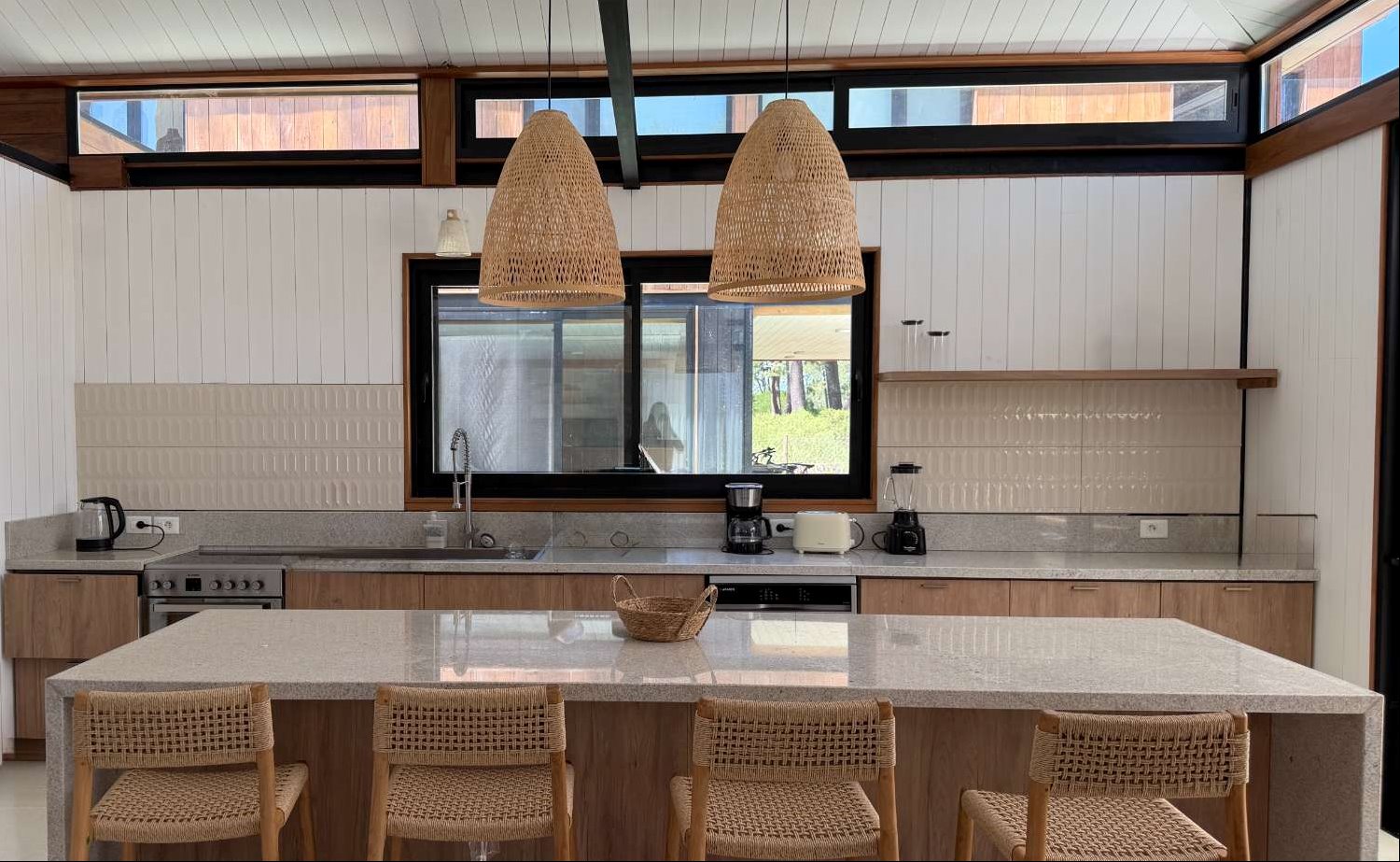 La cocina integrada, con isla central es muy luminosa y funcional, se complementa con dependencia de servicio con baño y entrada independiente, además de lavadero.