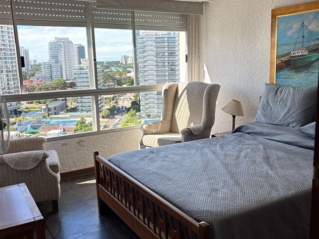 Departamento de 1 dormitorio ubicado en el piso 12 de la Torre La Plata, con una vista abierta y privilegiada a Playa Mansa y al Cerro Pan de Azúcar. Muy luminoso, con excelente orientación y grandes ventanales que permiten disfrutar del paisaje tanto de día como de noche.