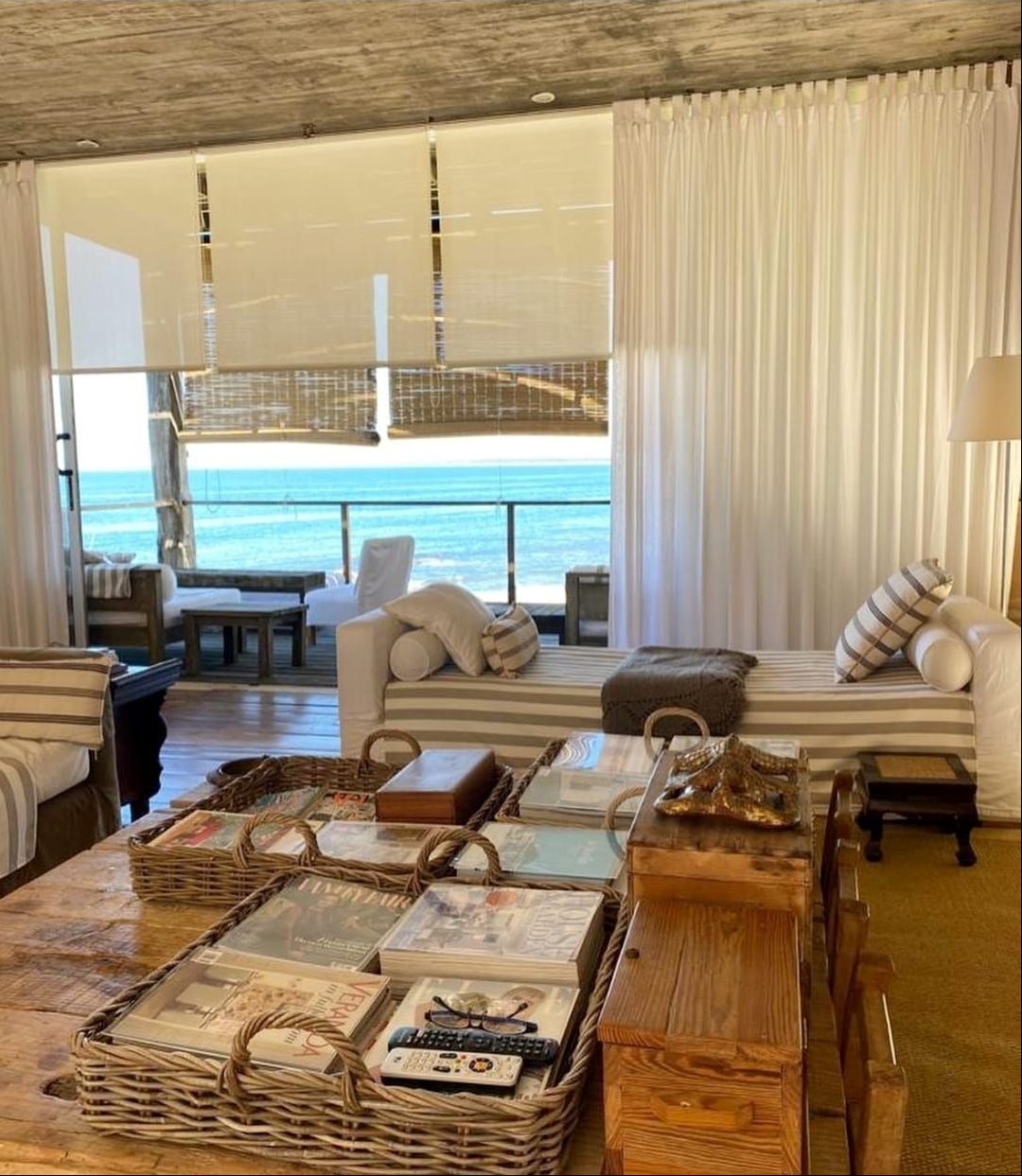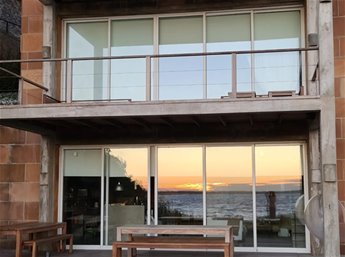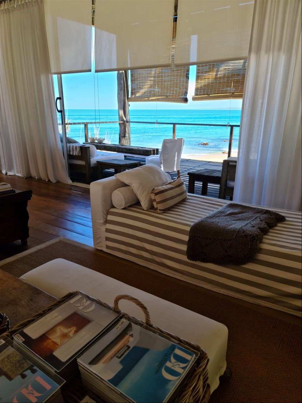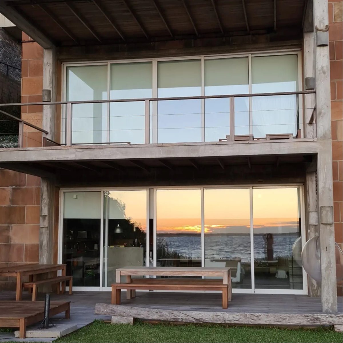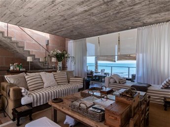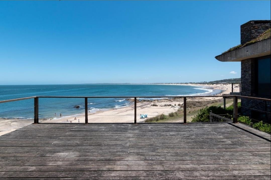 Espectacular casa en primera línea de mar sobre playa Mansa de José Ignacio. Se inauguró el año 2006. Está construida en piedra arenisca, decks de Lapacho y techo de teja colonial, conformado por dos módulos unidos por un patio central.