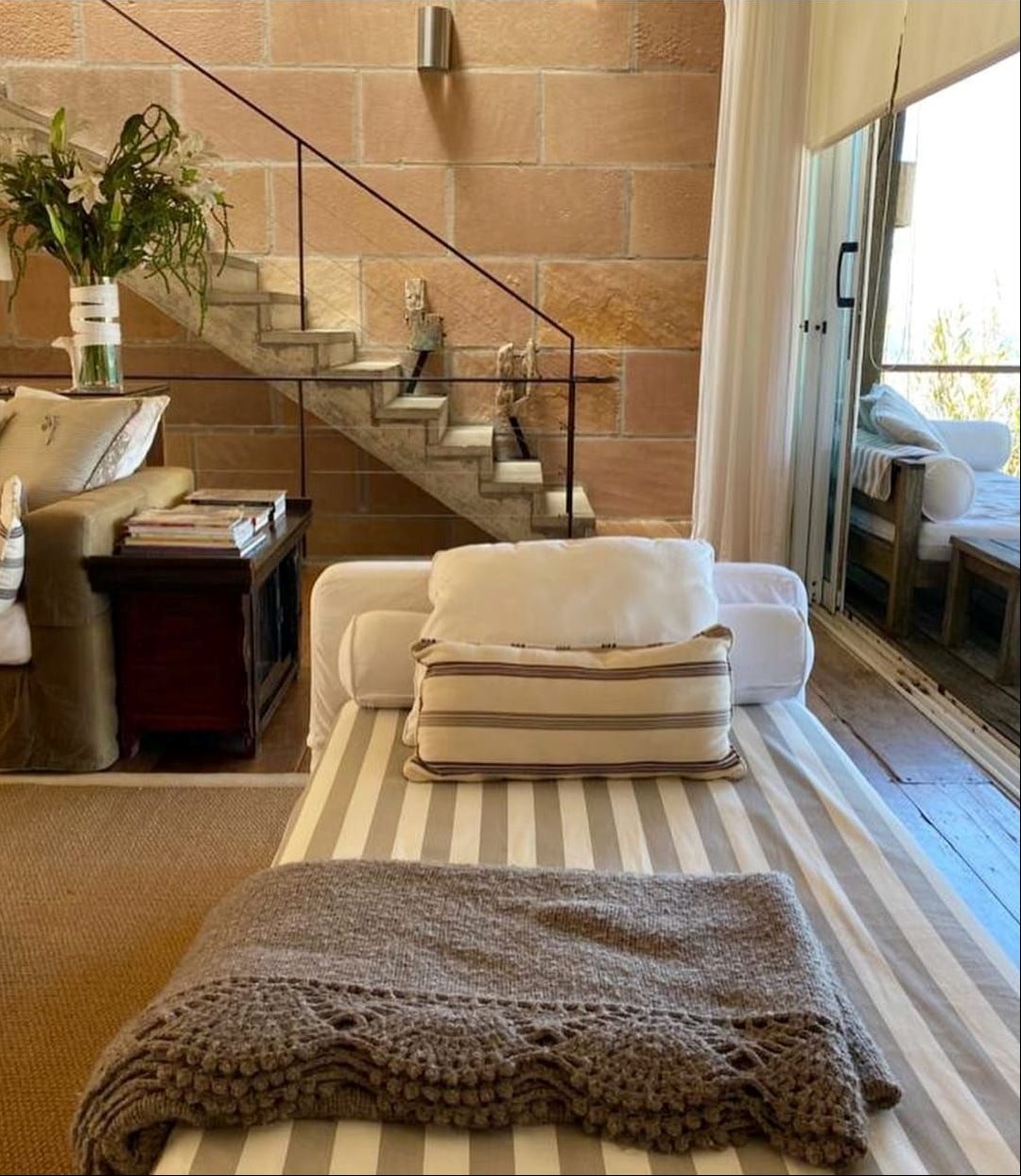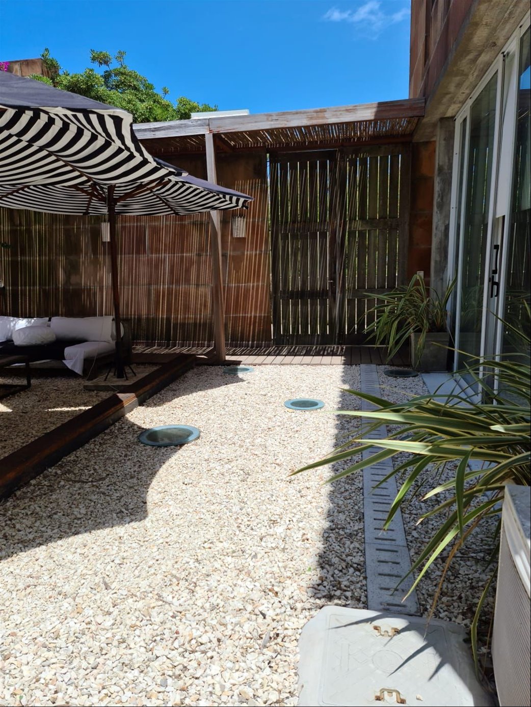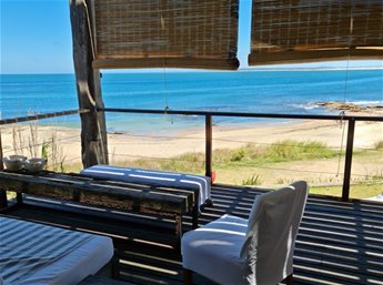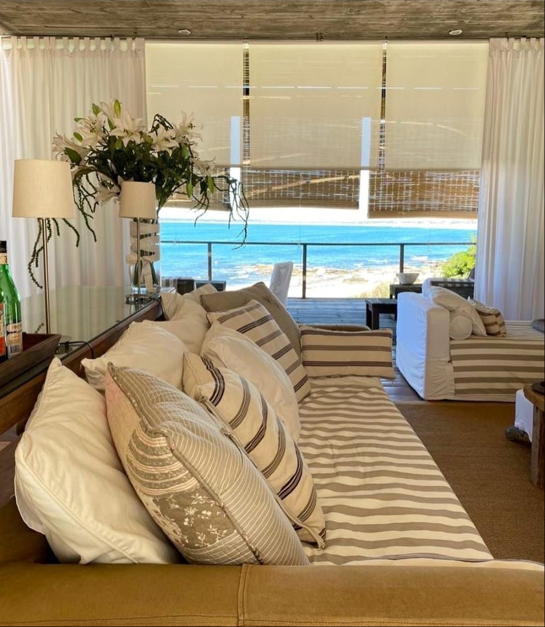 Espectacular casa en primera línea de mar sobre playa Mansa de José Ignacio. Se inauguró el año 2006. Está construida en piedra arenisca, decks de Lapacho y techo de teja colonial, conformado por dos módulos unidos por un patio central.