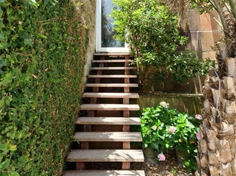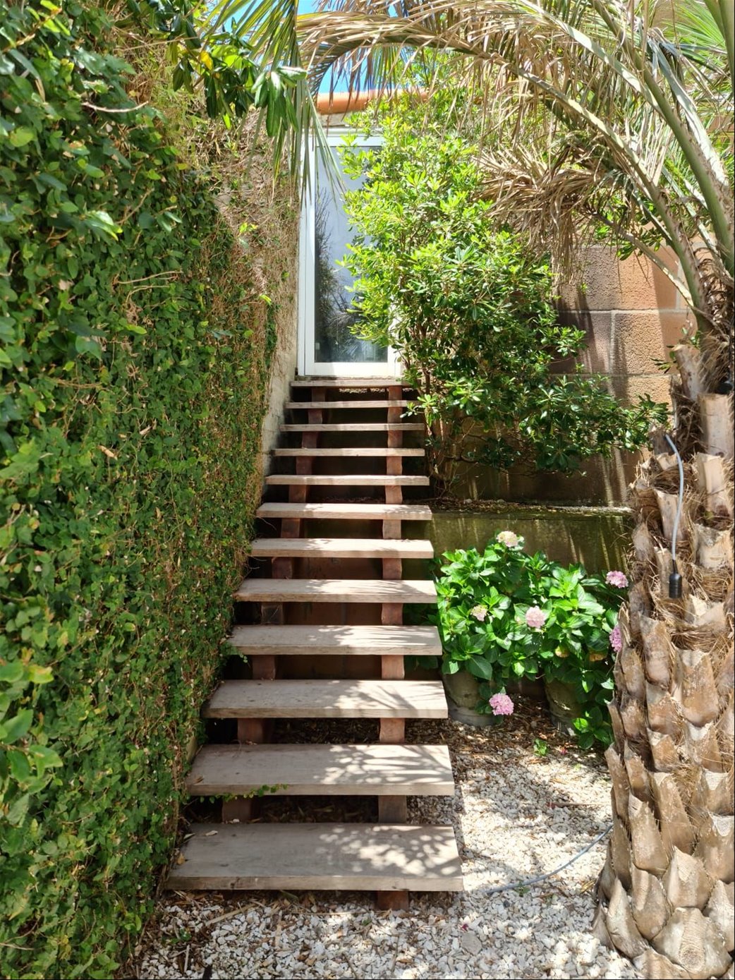 Tiene un espacio de playa entre rocas al bajar a la arena