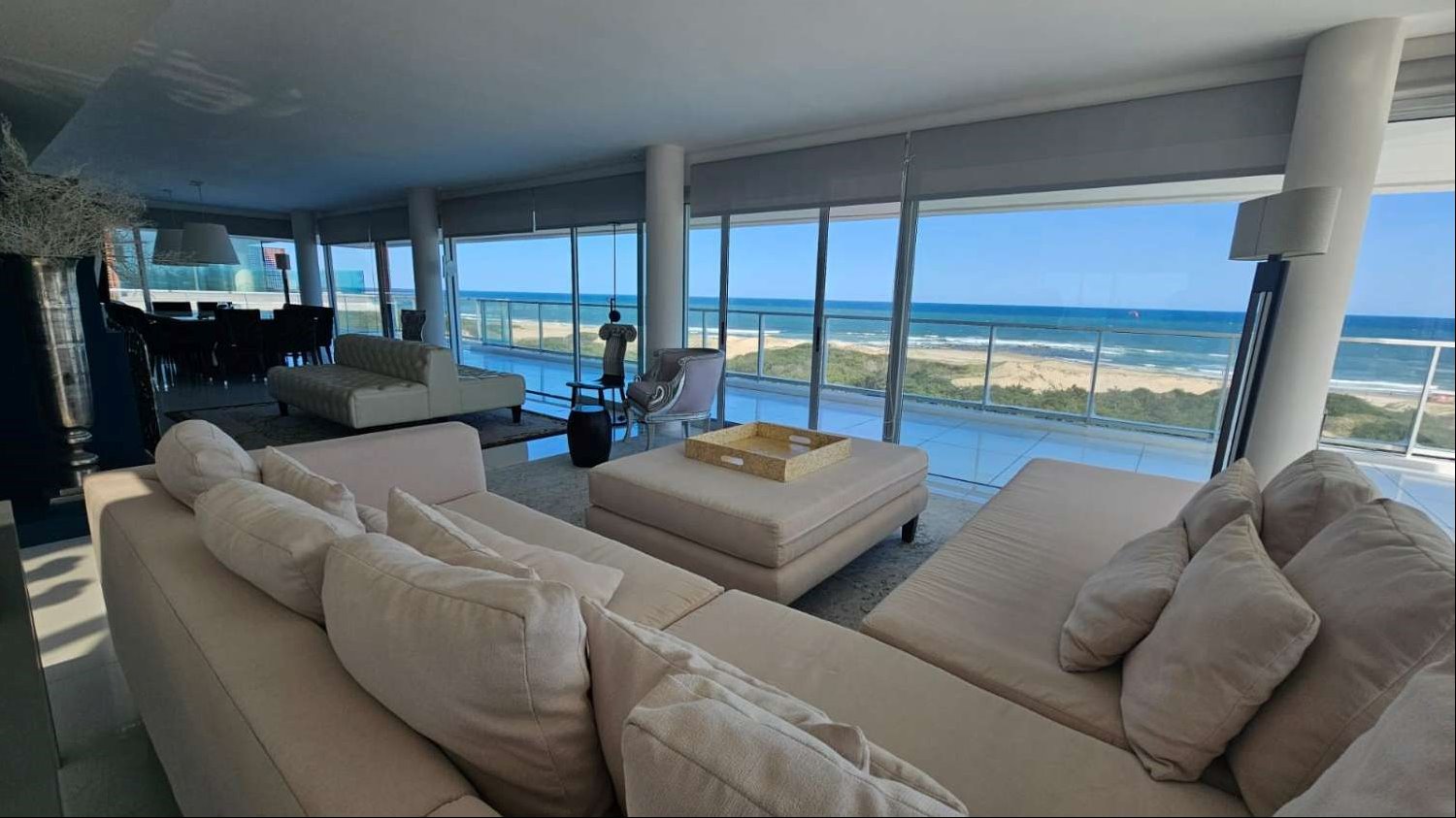 Entramos al hall desde los ascensores que llegan directo a la propiedad, y nos encontramos en una propiedad de ensueño, genial living comedor con una terraza al mar de grandes dimensiones, cocina definida de gran calidad, en una de las alas de distribución tenemos el toilette y los 3 dormitorios de gran tamaño en suite, y de la otra ala una master suite absolutamente genial en tamaño y estilo, que se abre en 2 vestidores y dos baños absolutamente independientes y completos.